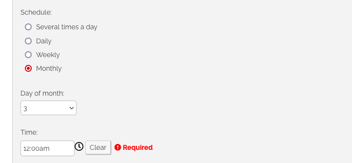 You can choose the following options:- Several times a day – the task will run every few minutes: