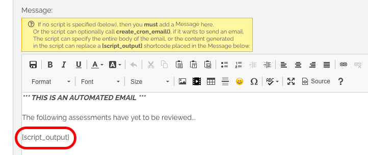 Note: the program will automatically fill in the information where it says [script_output] in the email message, so make sure you don't delete this line: