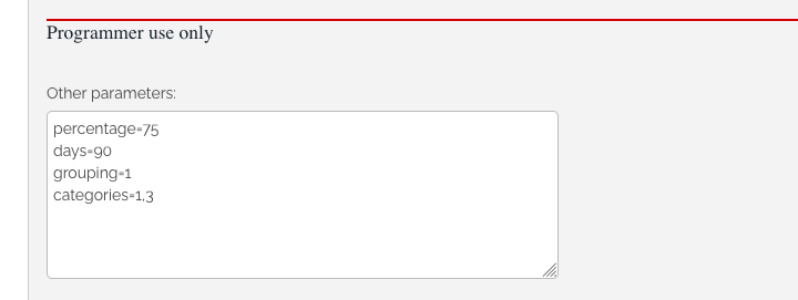 This can be customised by way of several parameters that can be added/edited in the Other parameters box...