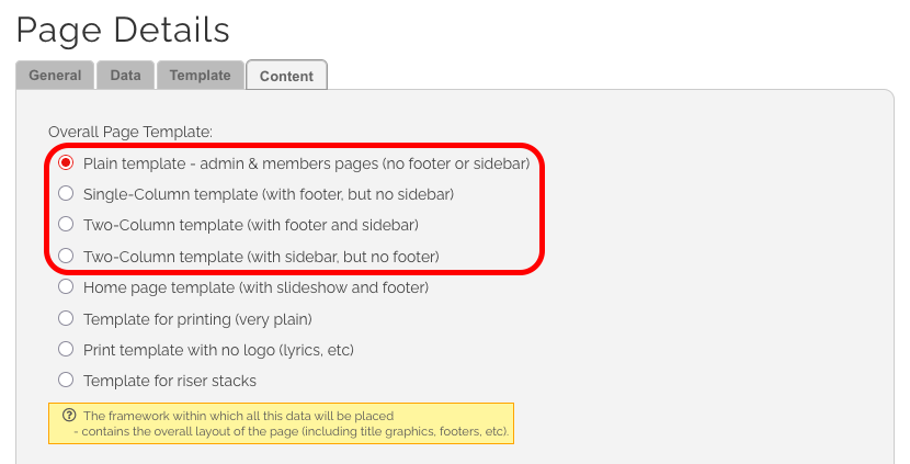 As well as the black bar and the footer at the bottom, there will be a "sidebar" on the right-hand side of the page. This is the column which has "Join our Mailing List", the search box, and the Facebook feed (by default). - Two-Column template (with sidebar, but no footer)