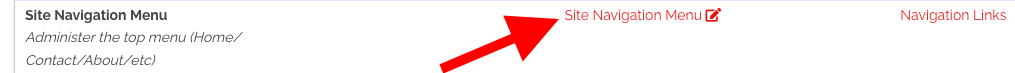 - Scroll down a little to the Site Navigation Menu section, and click on "Site Navigation Menu" in the middle column:
